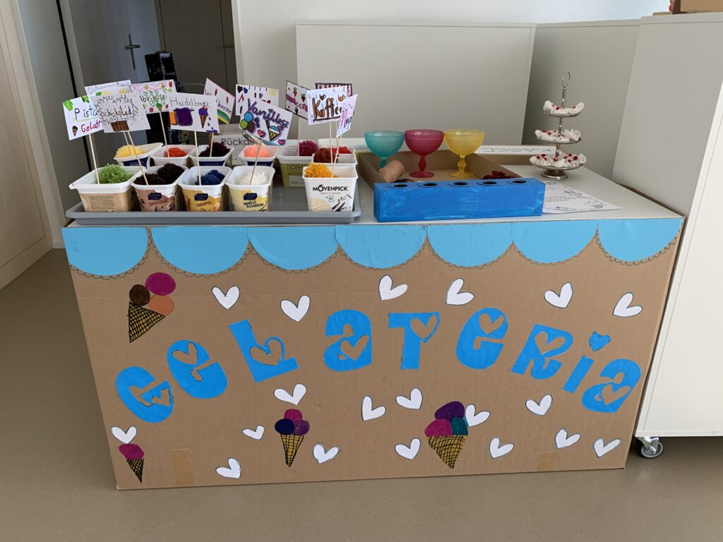 Mit voller Begeisterung haben sechs Primarschulklassen des Schulhauses Mettlen im Fach TTG (Textiles und Technisches Gestalten) ein fächerübergreifendes Projekt umgesetzt. Ein Markt mit zahlreichen Marktständen aus Altkarton wurde aufgebaut – darunter ein Glacéstand, ein Gemüse- und Früchtehändler, eine Bäckerei-Konditorei mit Kaffeemaschine, ein Süsswarenstand und eine Pizzeria.