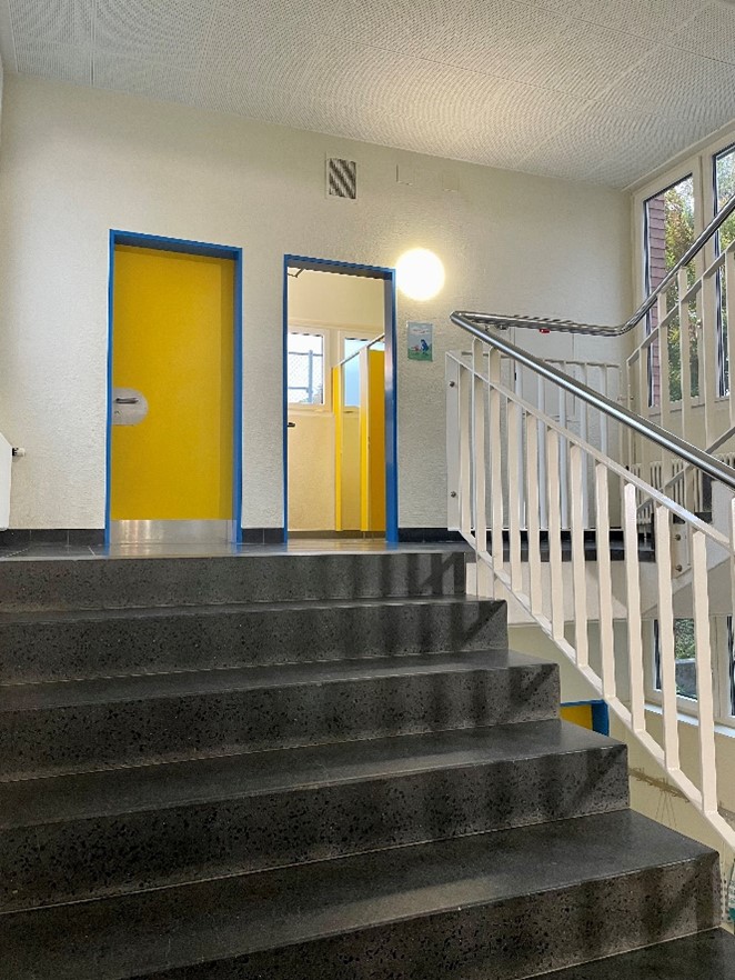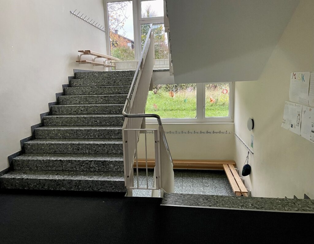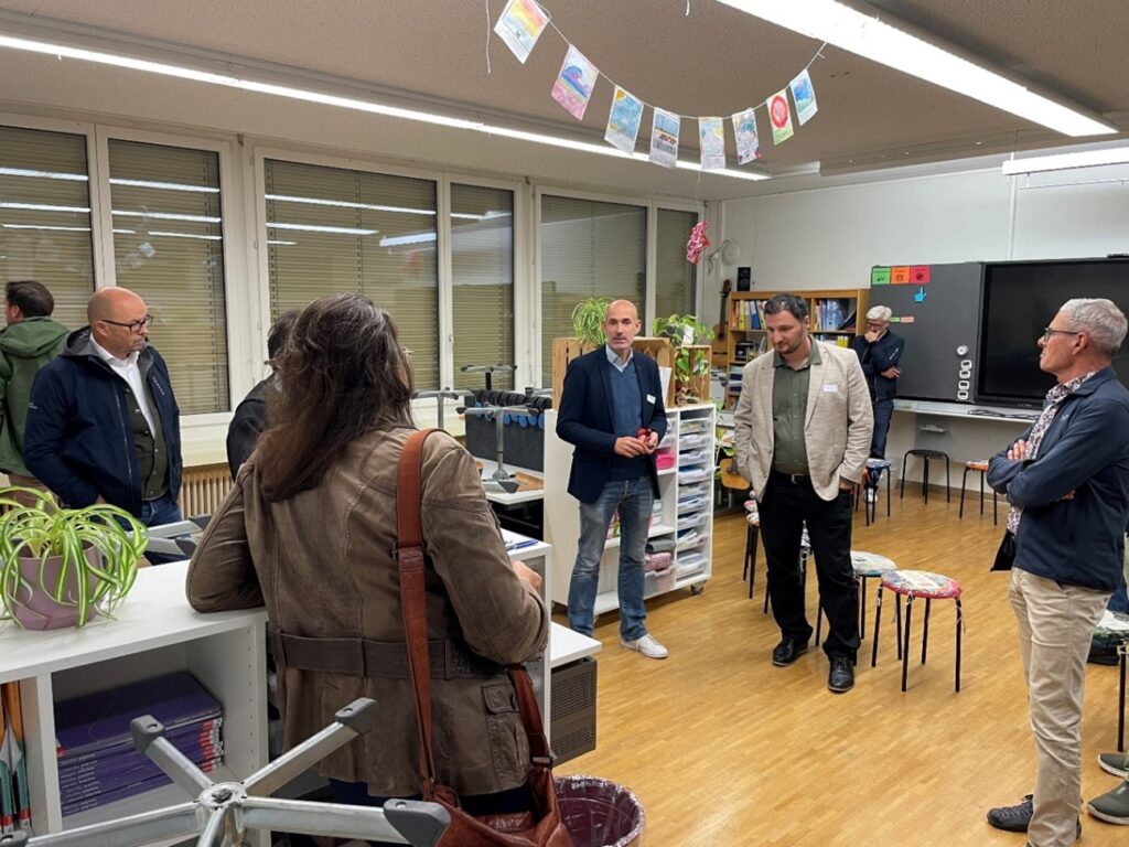 Im zweiten Teil der Veranstaltung führte Gemeinderat Stefan Gubler die Teilnehmenden durch die Schulzimmer, Nebenräume, Keller und die umgenutzte Hauswartwohnung. Direkt vor Ort zeigte Daniel Rutz, Schulleiter, auf, weshalb die Bauten aus den Jahren 1959 und 1965 den heutigen Anforderungen an einen modernen Schulbetrieb nicht mehr genügen. Es fehlt an Gruppenräumen und Rückzugsmöglichkeiten ausserhalb der Klassenzimmer. Die in die Jahre gekommenen WC-Anlagen auf den Halbstöcken und die Schulzimmer der oberen Stockwerke können nur über Treppen erreicht werden. Zudem wurde beim Rundgang offensichtlich, dass energetische Instandhaltungsarbeiten und Auflagen des Brandschutzes nur mittels umfassender Sanierung sichergestellt werden können. Am Schluss des Rundganges standen Nicole Keller, Schulpräsidentin, und Marco Hirzel, Gemeindepräsident, den Teilnehmenden für weitere Fragen zur Verfügung. Aus den Diskussionen lässt sich ableiten, dass der bauliche Handlungsbedarf erkannt wurde und die dargelegte Sanierungs- und Erweiterungsstrategie mehrheitlich befürwortet wird. Was die mögliche Etappierung mit einer späteren Aufstockung angeht, gibt es zum jetzigen Zeitpunkt noch unterschiedliche Einschätzungen.